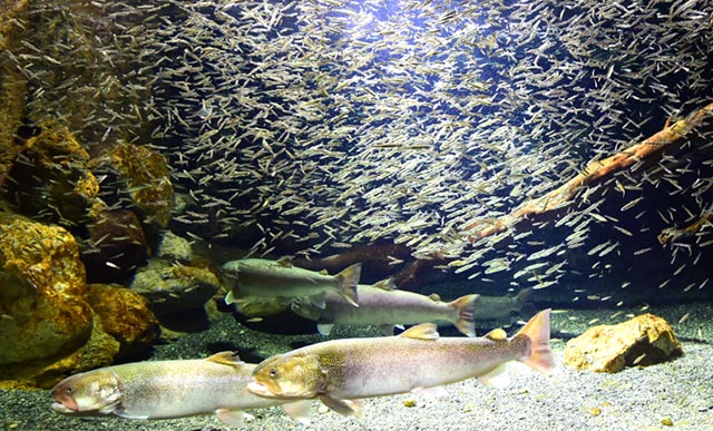 More than 70, large and small aquariums display 5,000 cold and warm water fish of 250 species.